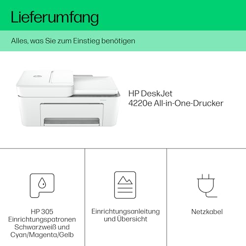 HP DeskJet 4220e Multifunktionsdrucker, 3 Monate gratis drucken mit HP Instant Ink inklusive, HP+, Drucker, Kopierer, Scanner, Mobiler Faxversand, WLAN, Automatische Dokumentenzuführung, Weiß