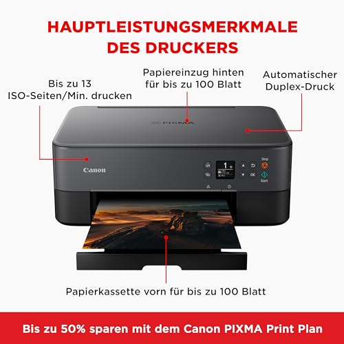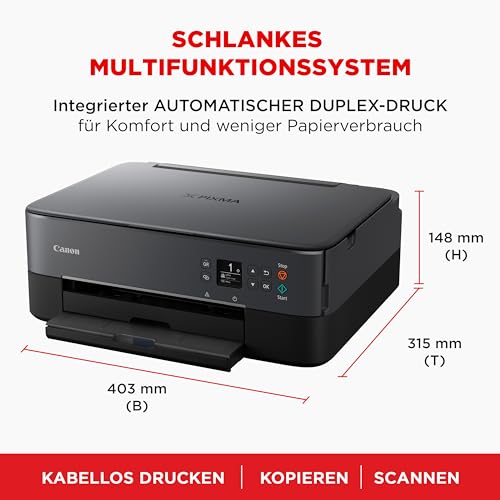 Canon PIXMA TS5350i Multifunktionsdrucker 3in1 (Tintenstrahl,Drucken, Kopieren, Scannen, A4, 3,7 cm OLED, WLAN, Duplexdruck, 2 Papierzuführungen, kompatibel mit Pixma Print Plan ABO) Schwarz